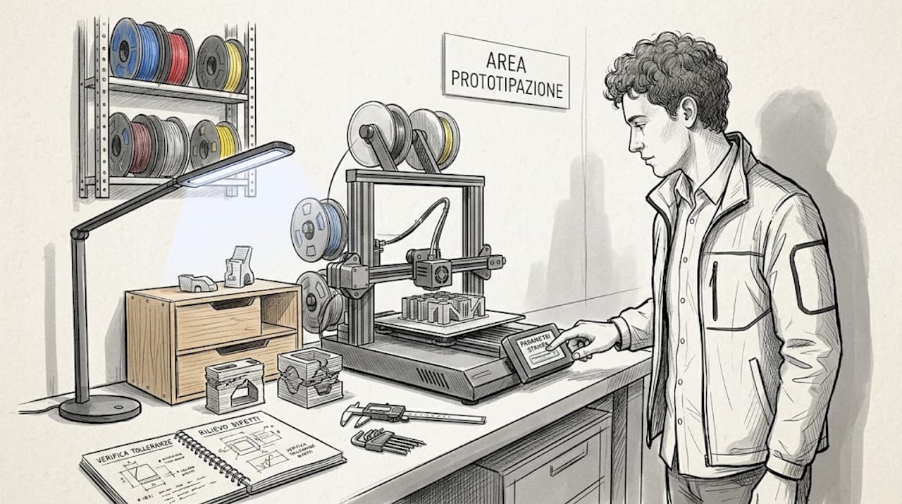 I vantaggi della modellazione 3D non si fermano alla geometria. Il pensiero iterativo cambia: invece di aspettare settimane per un prototipo fisico, si stampa, si testa, si corregge il file e si ristampa. Il ciclo si accorcia a ore. Questo accelera la validazione delle ipotesi progettuali in modo radicale.
